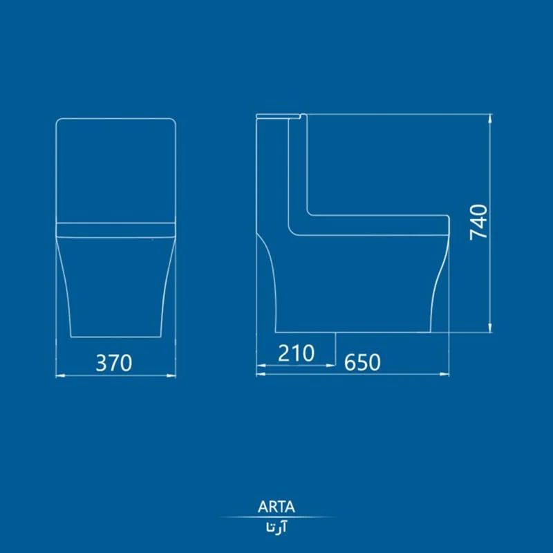 توالت فرنگی مونوبلاک آرتاطراحی چارگوش زیباطراحی صاف و مسطح و با پیچ نصب مخفی بهداشتی و نظافت آسان کممصرف و دارای مکانیزم دوزمانه درب آرامبند و آساننصب تخلیۀ سریع با سیستم فلاشینگ ریزشی (Washdown)قدرت تخلیۀ فوقالعاده با سایز خروجی 3 اینچی دارای سیستم خودشور و شیر بیدۀ سرد و گرم
