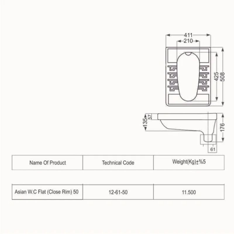 توالت ایرانی مروارید مدل رومینا کوچک تخت