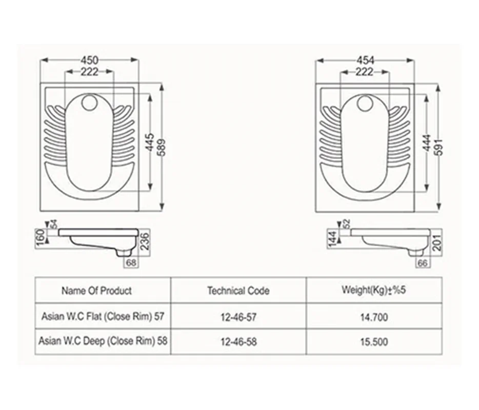 توالت های ایرانی یا زمینی به دو دسته کلی تخت و گود تقسیم می شوند. البته برخی دسته بندی نیم گود را هم به آن اضافه می نمایند. این دسته بندی همان طور که از نام آن پیداست ، مربوط به عمق کاسه آن می باشد. این که از کدام نوع استفاده کنیم بهتر است در درجه اول به سلیقه مشتری و درجه دوم به ارتفاع کف و فضای قابل دسترس برای نصب توالت زمینی بستگی دارد. برای مثال توالت بالا دارای عمق تخت یعنی عمق کم می باشد. توالت های زمینی هم چنین عضوی جدا نشدنی از سرویس های ایرانی می باشد.